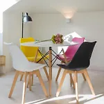 우아한 가구는 쪽모이 세공 바닥과 이상적으로 결합되어 있습니다.